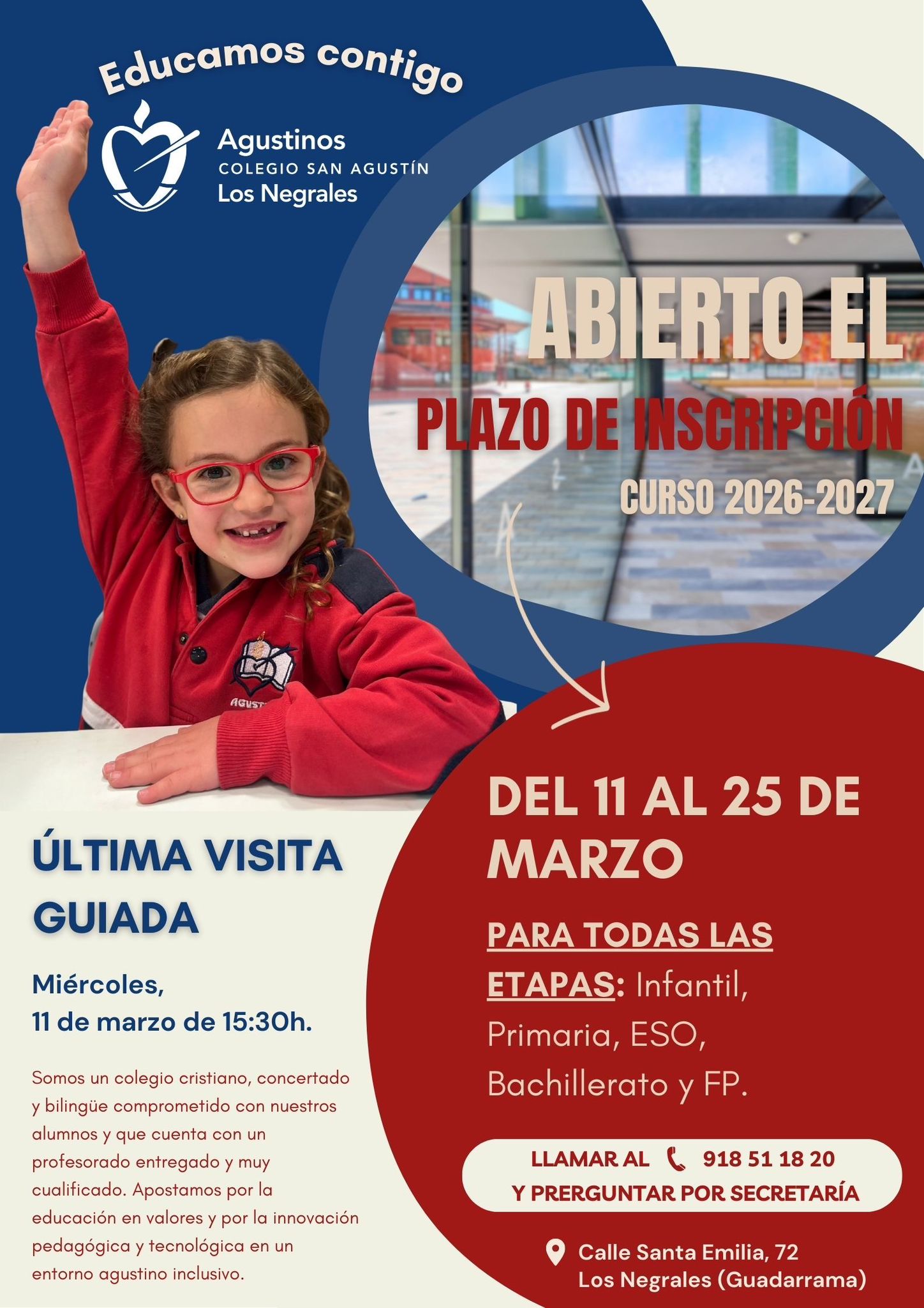 Confirmación de asistencia: admisiones@sanagustinlosnegrales.es